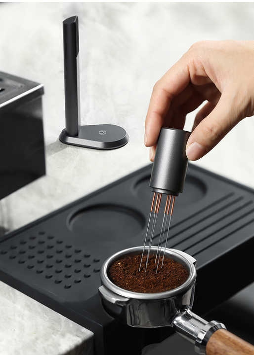 Achieve perfectly even espresso extraction with this 6-piece magnetic WDT tool set. Featuring ultra-fine 0.6mm needles, this distribution tool effortlessly breaks up clumps and eliminates channeling for a balanced, flavorful shot. The magnetic base keeps needles organized and easily accessible during workflow. Made from durable, food-safe materials, this set is essential for specialty coffee enthusiasts and home baristas aiming for professional-grade results.